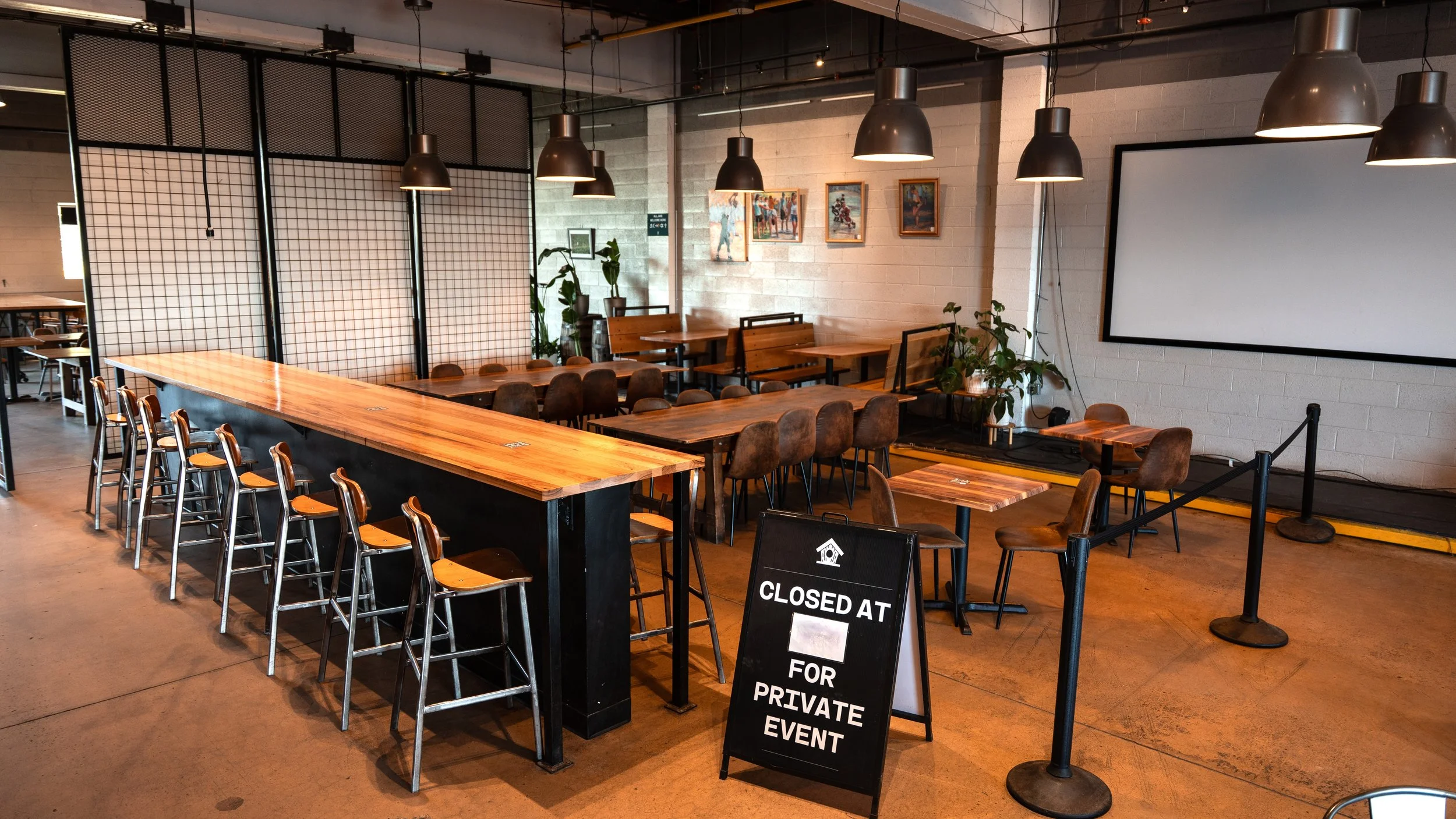 Rent 1-2 of our community tables for your next gathering! Our community tables are located near the main entrance of our indoor space, offering quick access to the outdoor patio with food trucks and yard games. The community tables are located near the main bar, making ordering a breeze!